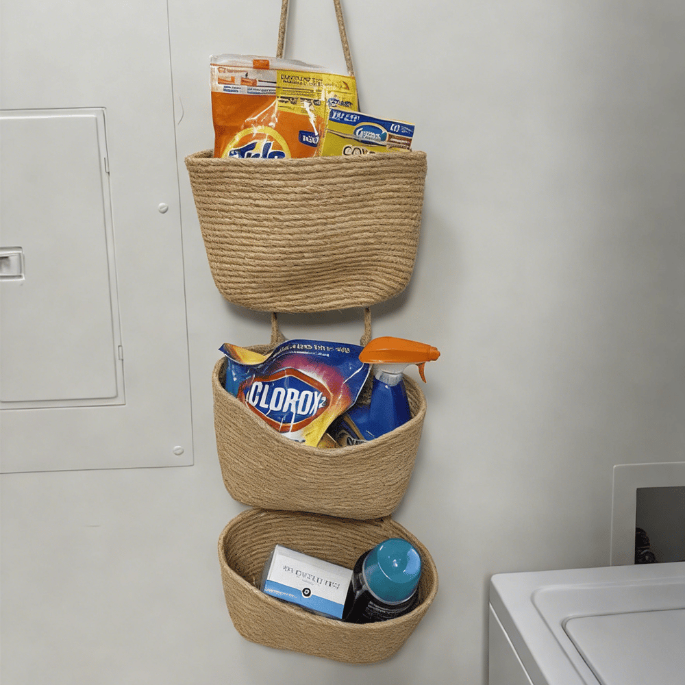 Three spacious woven baskets keep items sorted and visible. Perfect for toys, toiletries, baby essentials, kitchen supplies, mail, or accessories.